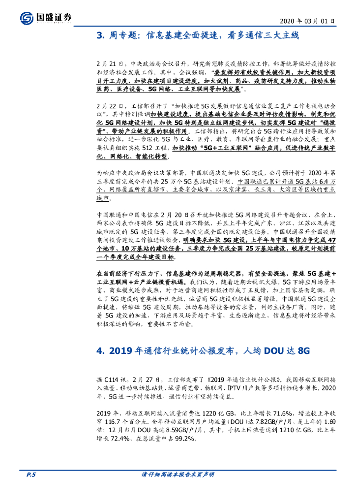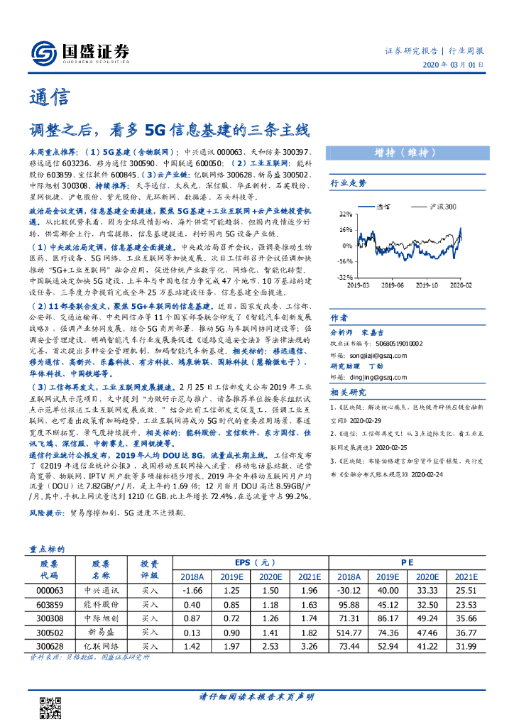 国盛证券:通信行业周报:调整之后,看多5G信息基建的三条主线.pdf