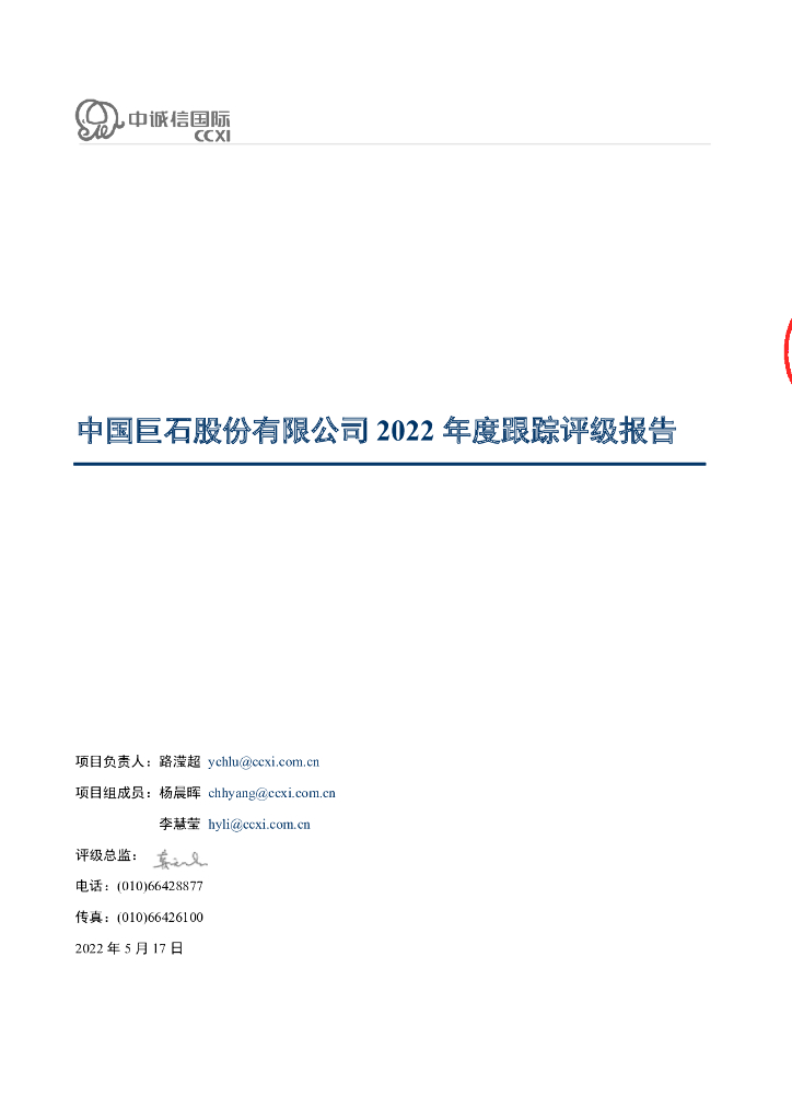中诚信:中国巨石股份有限公司2022年度跟踪评级报告.pdf