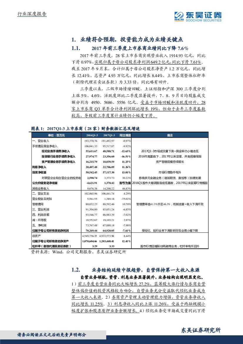 东吴证券:2017证券行业三季报总结:业绩表现平稳,市场回暖自营贡献增加.pdf