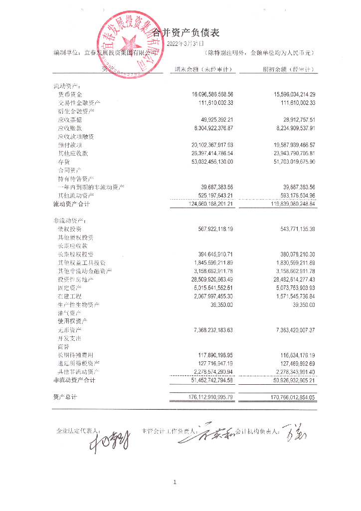 宜春发展投资集团有限公司2022年一季度财务报表.pdf