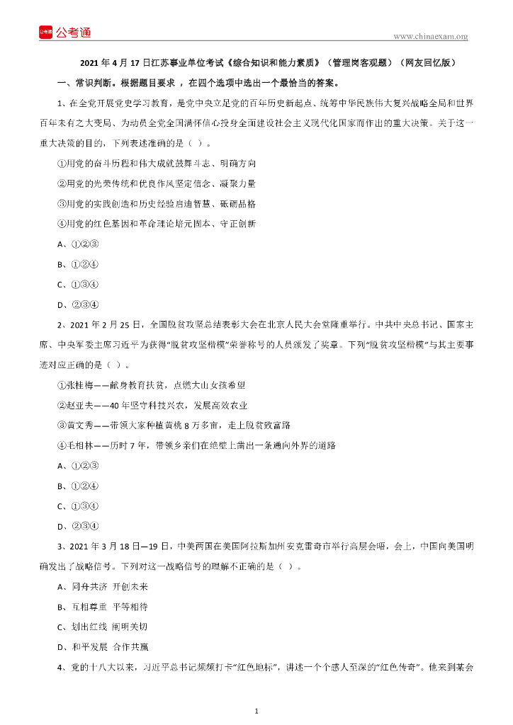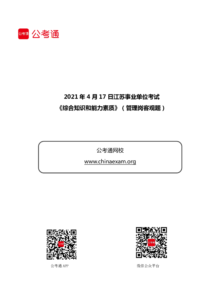 2021年4月17日江苏事业单位考试《综合知识和能力素质》(管理岗客观题).pdf