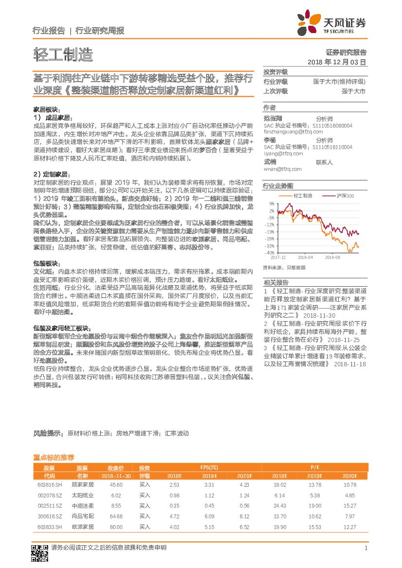 天风证券:轻工制造行业研究周报:基于利润往产业链中下游转移精选受益个股,推荐行业深度《整装渠道能否释放定制家居新渠道红利》.pdf