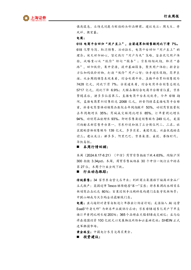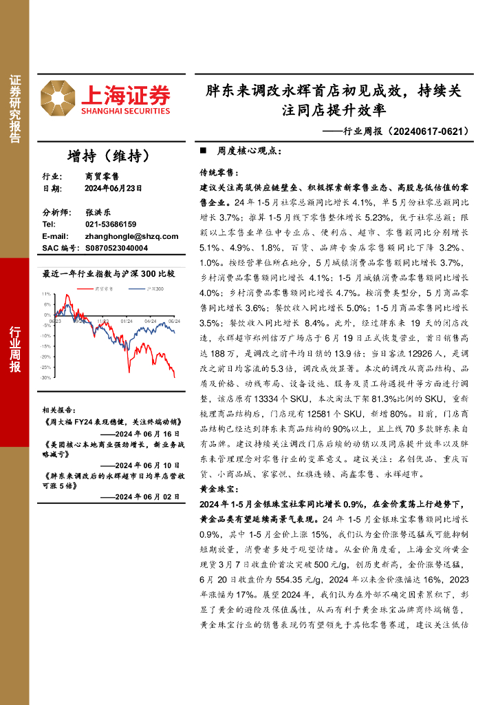 上海证券:商贸零售行业周报:胖东来调改永辉首店初见成效,持续关注同店提升效率.pdf