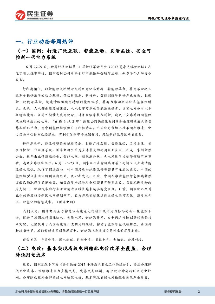 民生证券:电气设备与新能源行业周报:输配电价改革降用电成本,推进新一轮能源革命.pdf