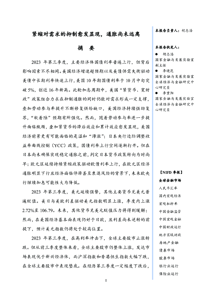 NIFD季报:紧缩对需求的抑制愈发显现,通胀尚未远离——2023Q3全球金融市场报告.pdf