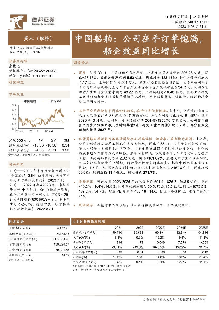 德邦证券:中国船舶:公司在手订单饱满,船企效益同比增长.pdf