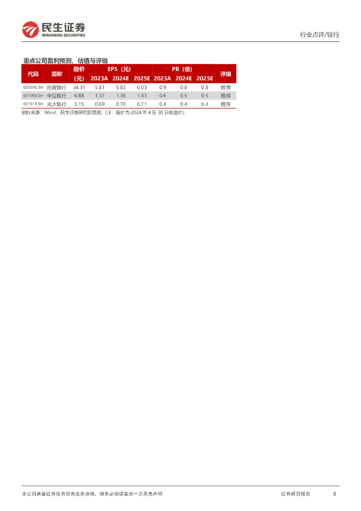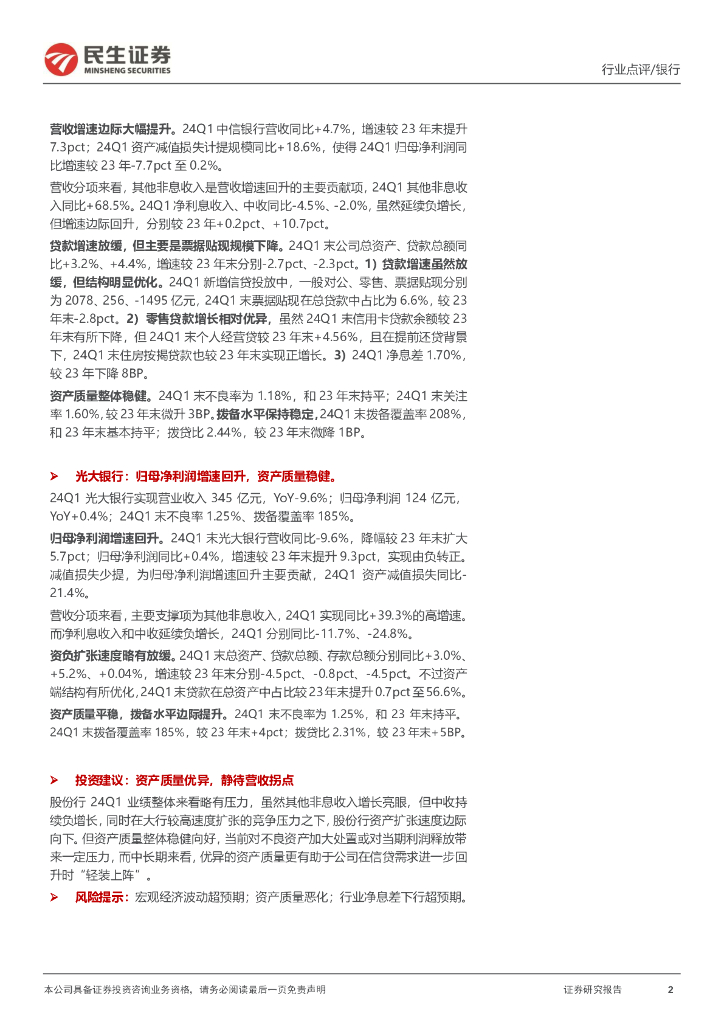 民生证券:招商、中信、光大银行2024年一季报点评:资产质量稳健向好.pdf