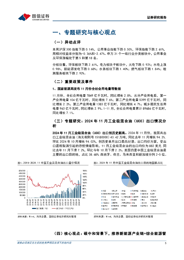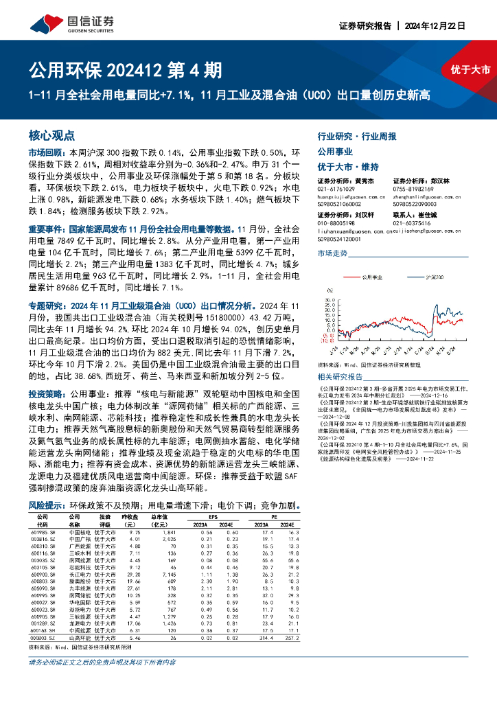 国信证券:公用环保行业202412第4期:1-11月全社会用电量同比+7.1%,11月工业及混合油(UCO)出口量创历史新高.pdf