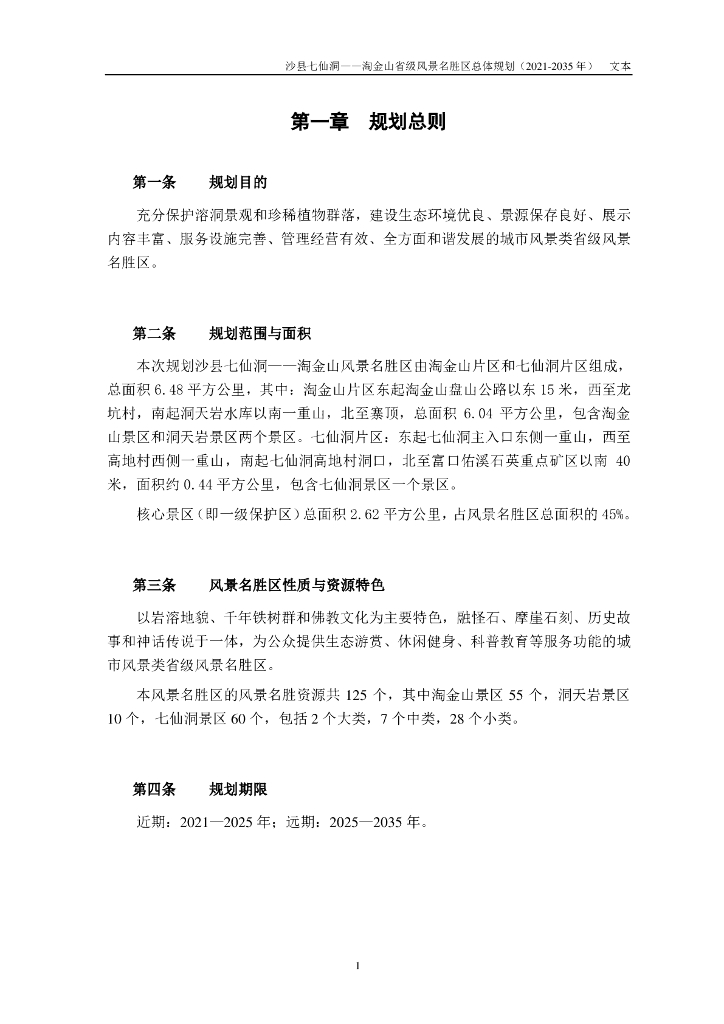 沙县七仙洞——淘金山省级风景名胜区总体规划(2021-2035年)规划文本.pdf