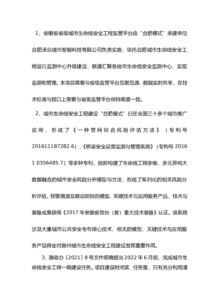 滁州市城市生命线安全工程建设项目(一期) 单一来源采购公示.doc