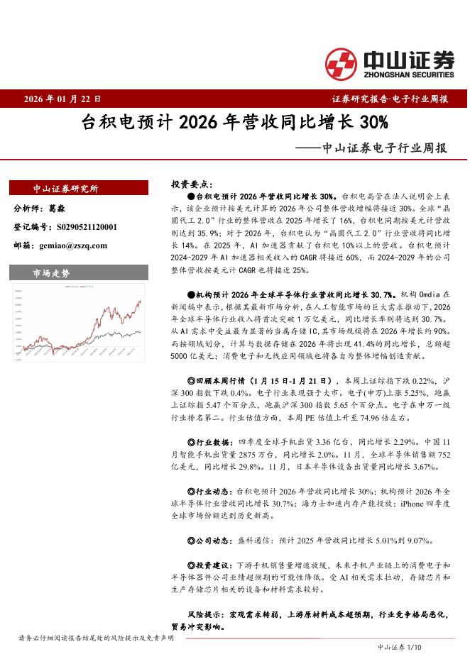 中山证券:电子行业周报:台积电预计2026年营收同比增长30%.pdf