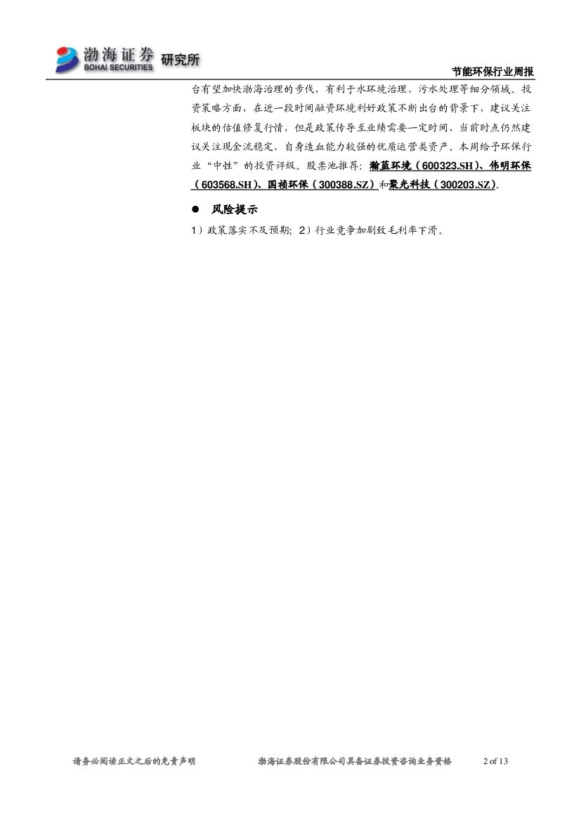 渤海证券:节能环保行业周报:生态环境部:将开展渤海综合治理攻坚战.pdf
