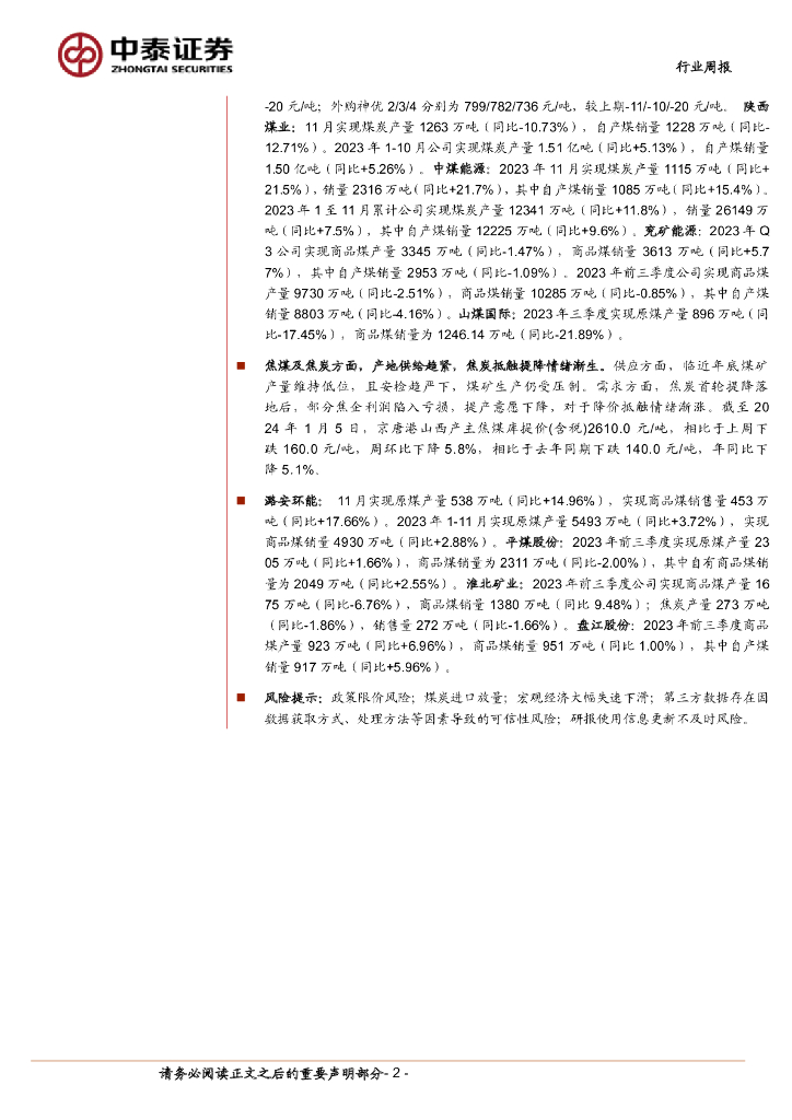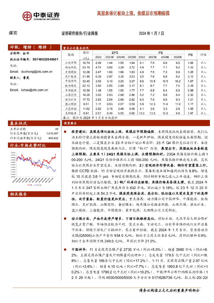 中泰证券:煤炭行业周报:高股息催化板块上涨,焦煤后市预期偏强.pdf