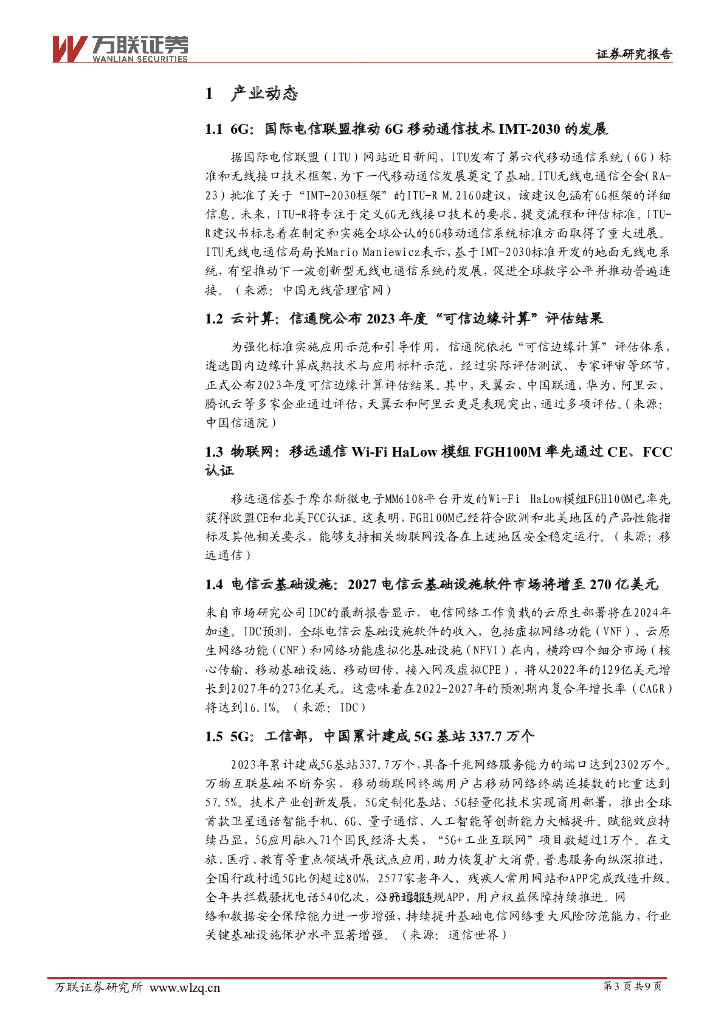 万联证券:通信行业周观点:ITU发布“6G”标准和无线接口技术框架,推动移动通信发展.pdf