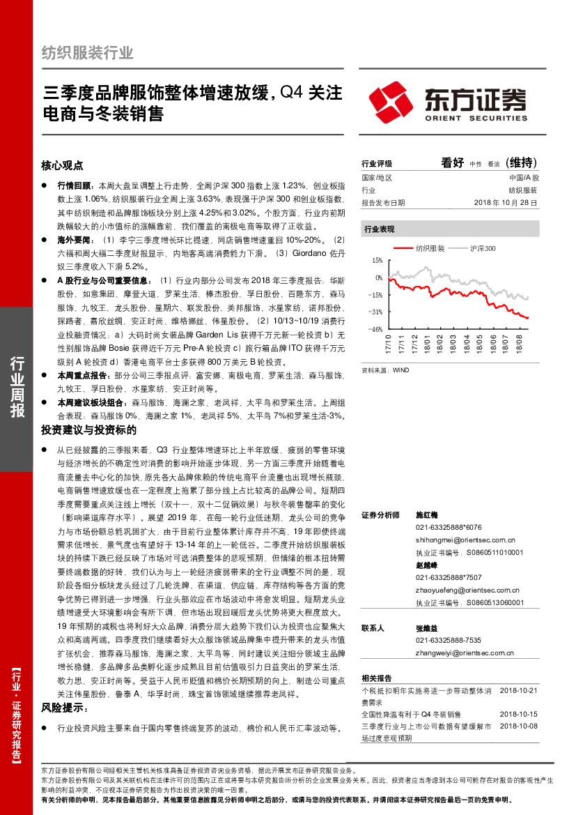 东方证券:纺织服装行业周报:三季度品牌服饰整体增速放缓,Q4关注电商与冬装销售.pdf