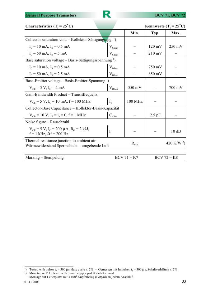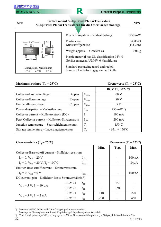 BCV 71, BCV 72 General Purpose Transistors 数据手册.pdf
