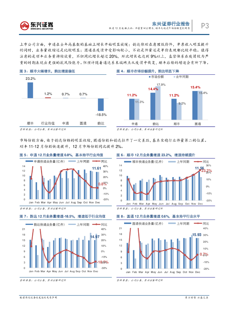 东兴证券:快递12月数据点评:件量重回正增长,顺丰与韵达市场份额变化明显.pdf