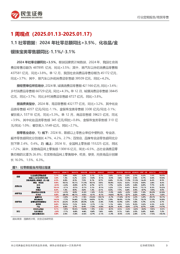 民生证券:零售周观点:24年社零总额同比+3.5%,重视线上新渠道机遇.pdf