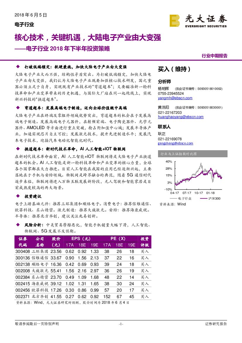 光大证券:电子行业2018年下半年投资策略:核心技术,关键机遇,大陆电子产业由大变强.pdf