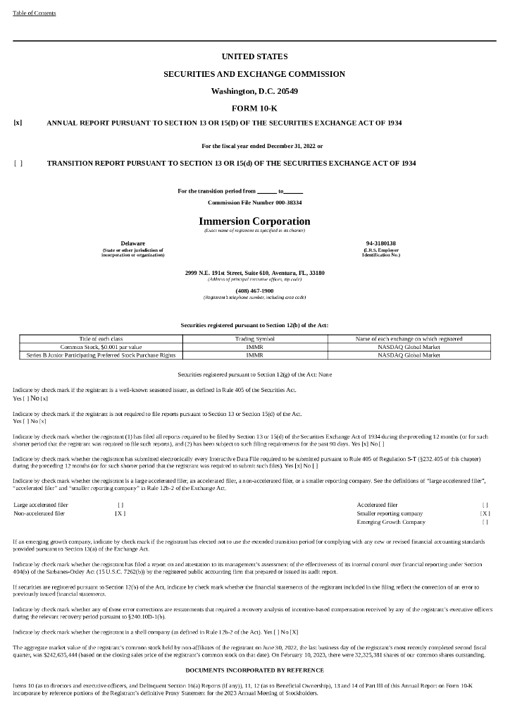 Immersion(IMMR)2022财年年度报告(英文版).pdf
