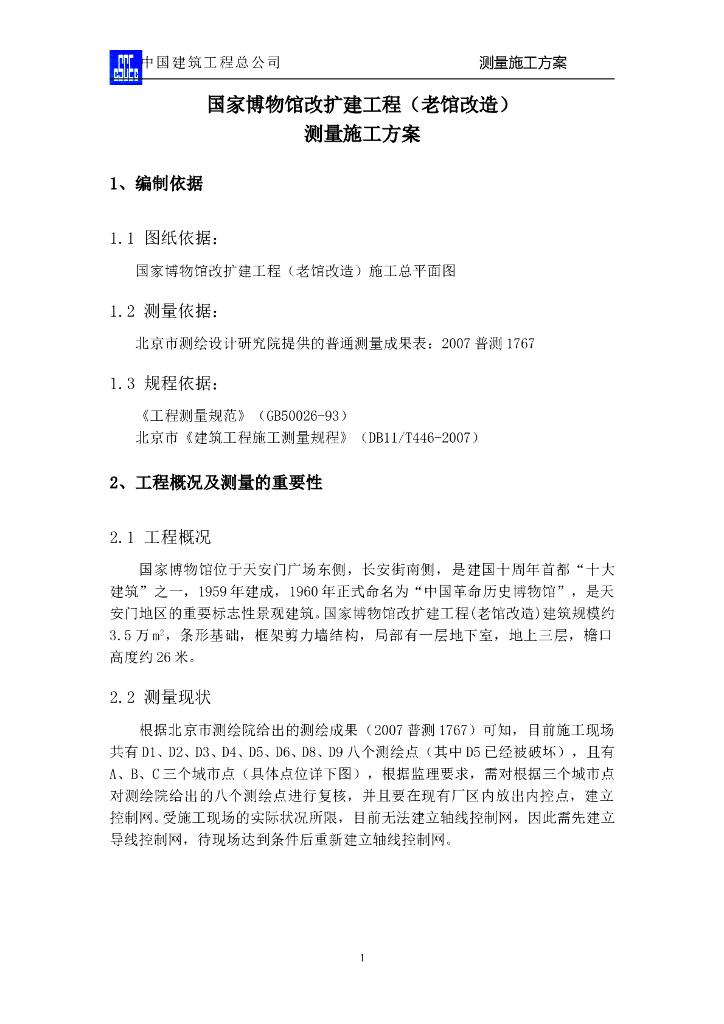 中建国家博物馆改扩建工程(老馆改造)测量施工方案(共13页).doc