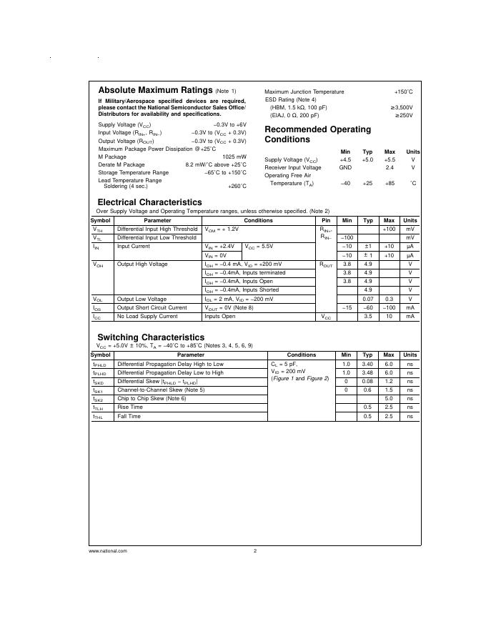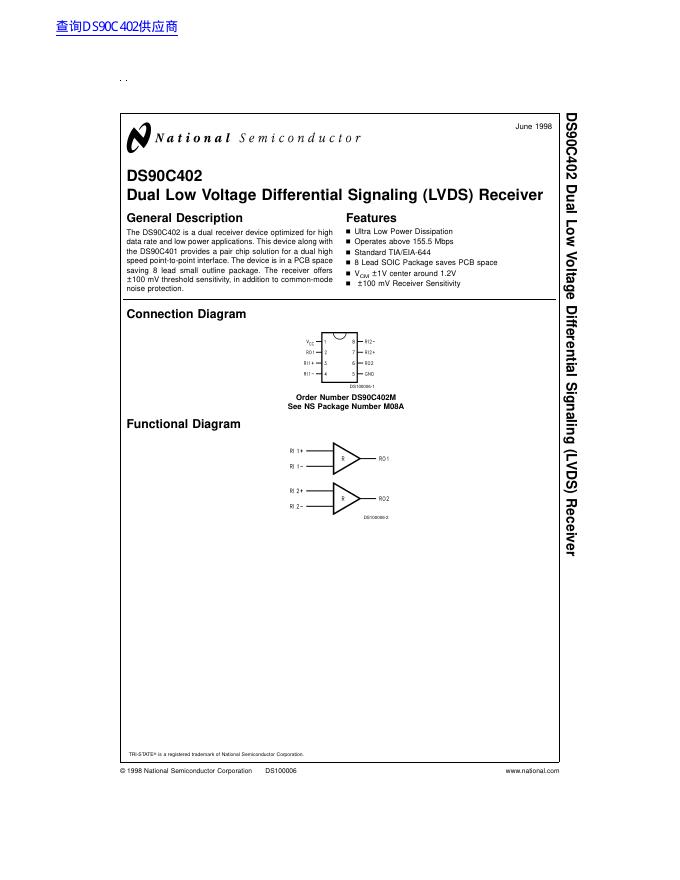 NATIONAL SEMICONDUCTOR - May 27, 2008 DS15BA101 1.5 Gbps Differential Buffer with Adjustable Output Voltage General 说明书