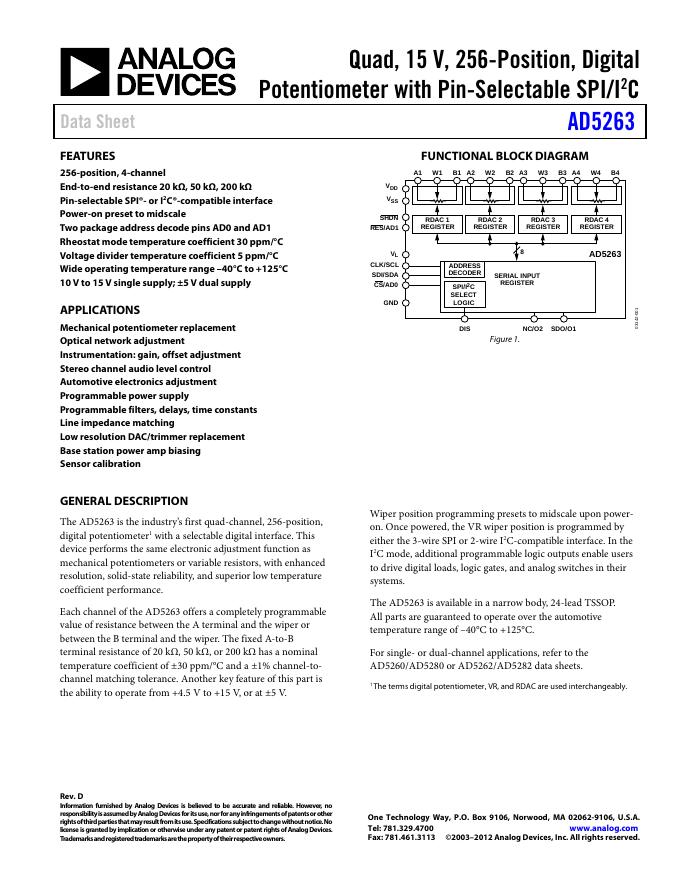 ANALOG DEVICES AD5263 英文产品数据手册.pdf