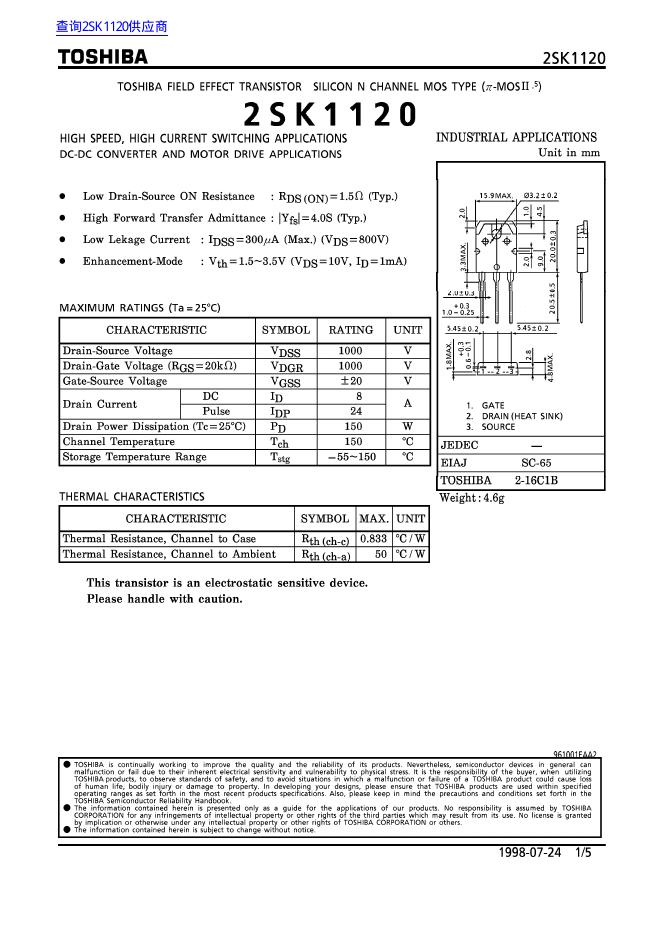 东芝 2SK1120 数据手册.pdf