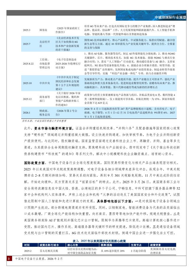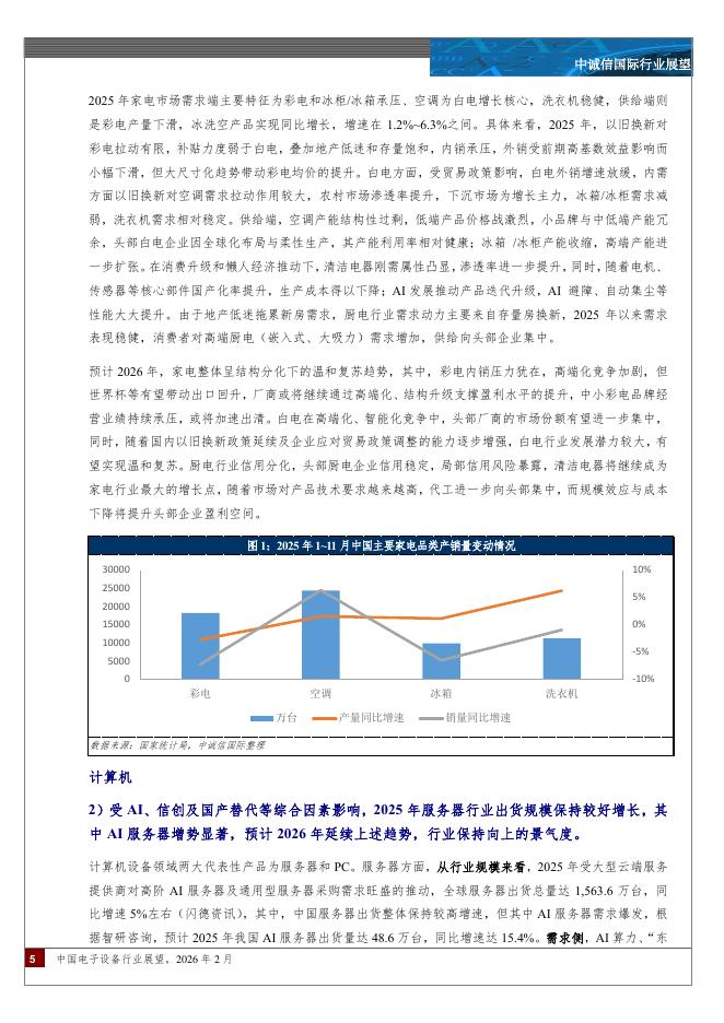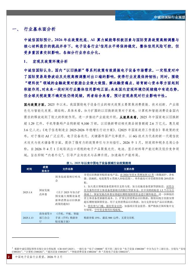 中诚信国际:中国电子设备行业展望:预计2026年在政策托底、AI算力赋能等积极因素与国际贸易政策高频调整与核心材料涨价的挑战并存下,行业信用水平将保持稳定。.pdf