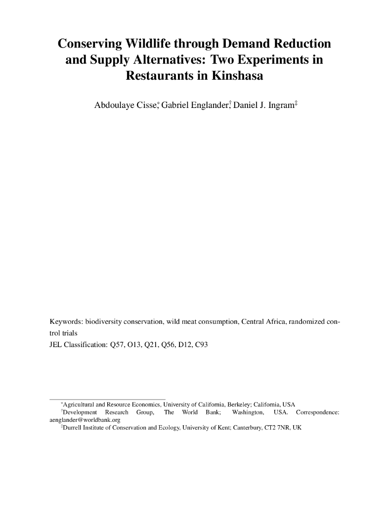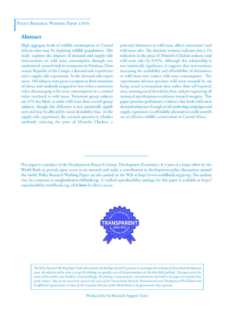 世界银行:通过减少需求和供应替代方案保护野生动物:金沙萨餐馆的两项实验(英文版).pdf
