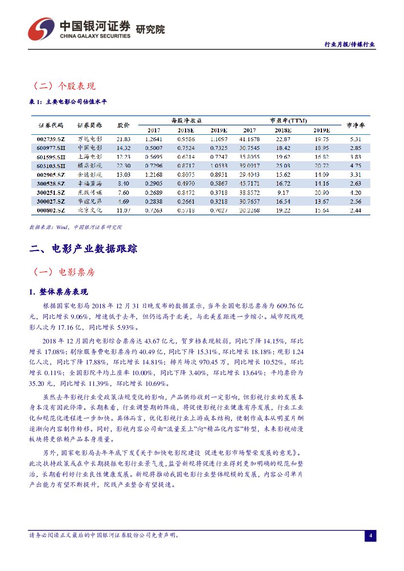 中国银河:12月中国电影月报:2018中国电影总票房突破600亿,市场集中度有所增加.pdf