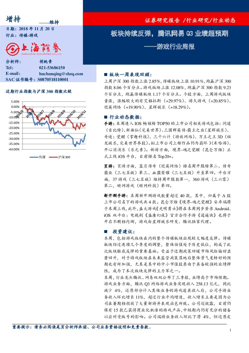 上海证券:游戏行业周报:板块持续反弹,腾讯网易Q3业绩超预期.pdf