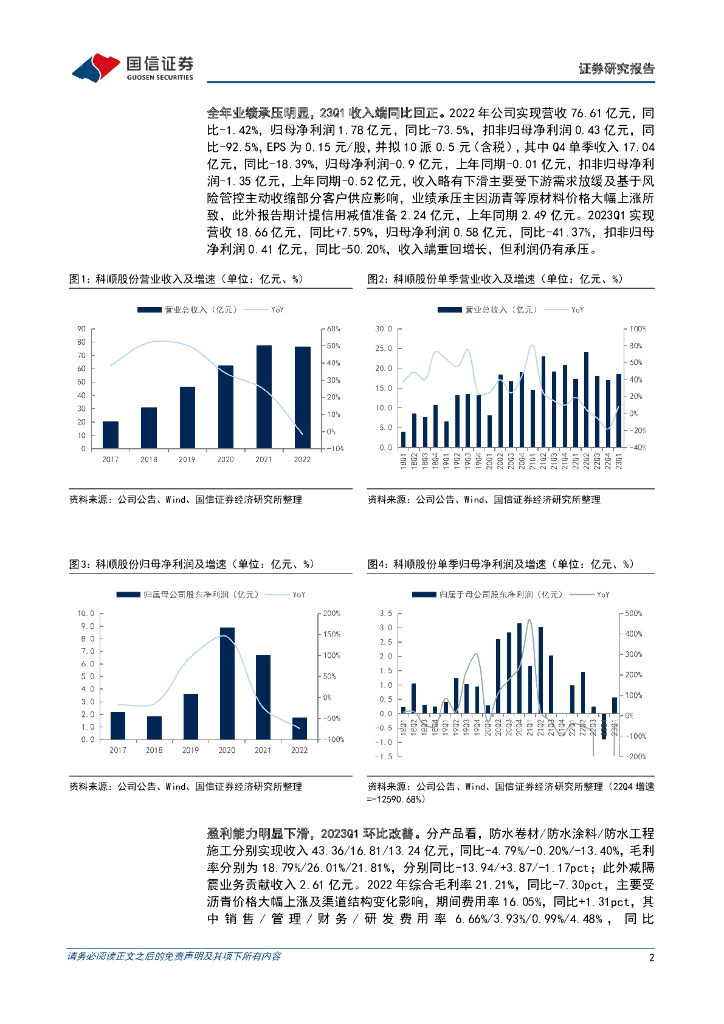 国信证券:科顺股份(300737)-2022年报及2023一季报点评:业绩短期承压,23年弹性依旧可期.pdf