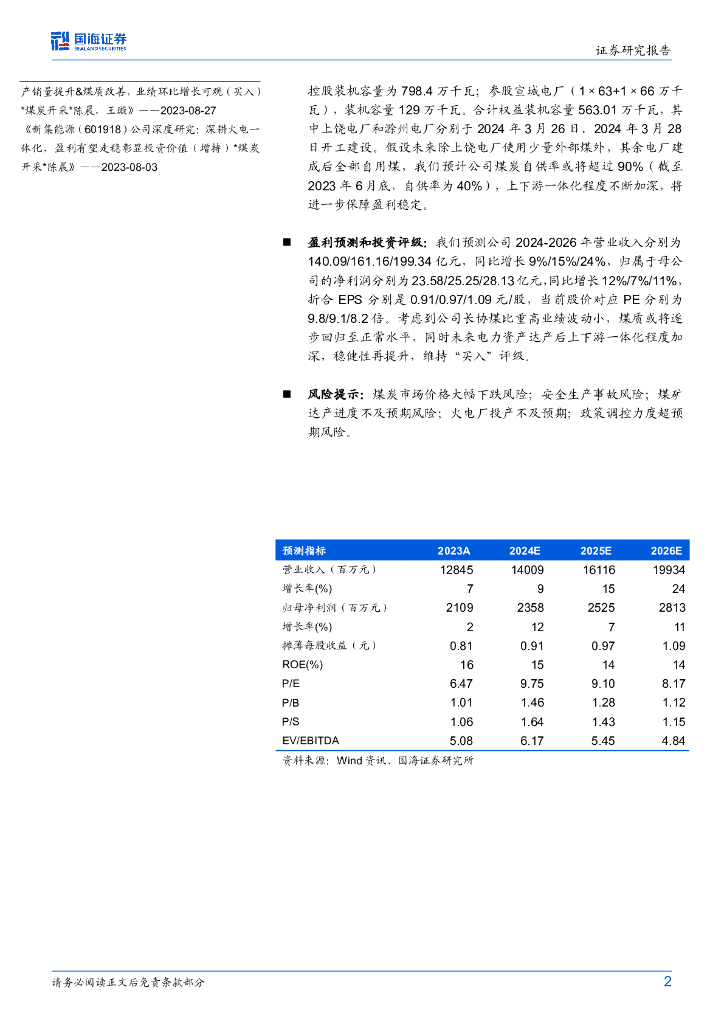 国海证券:新集能源(601918)-2024年一季报点评报:热值改善贡献盈利增量,两座电厂开工建设,煤电一体化进程加快.pdf