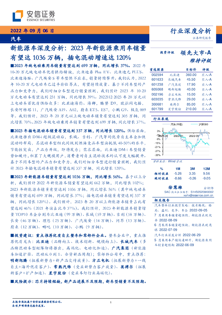 安信证券:新能源车深度分析:2023年新能源乘用车销量有望达1036万辆,插电混动增速达120%.pdf