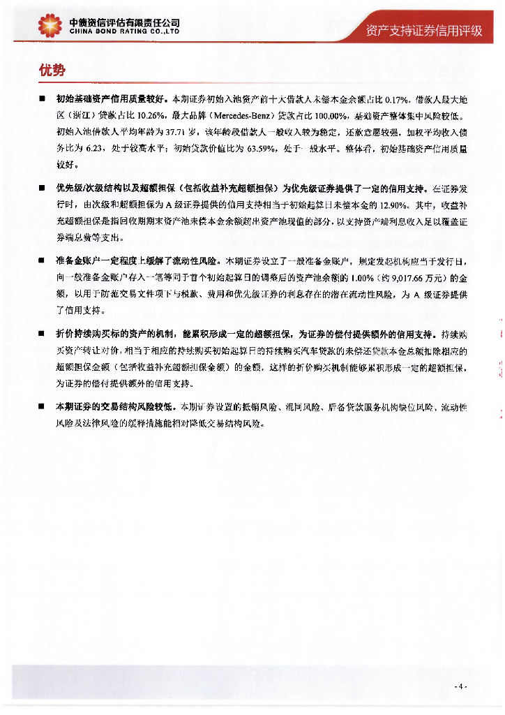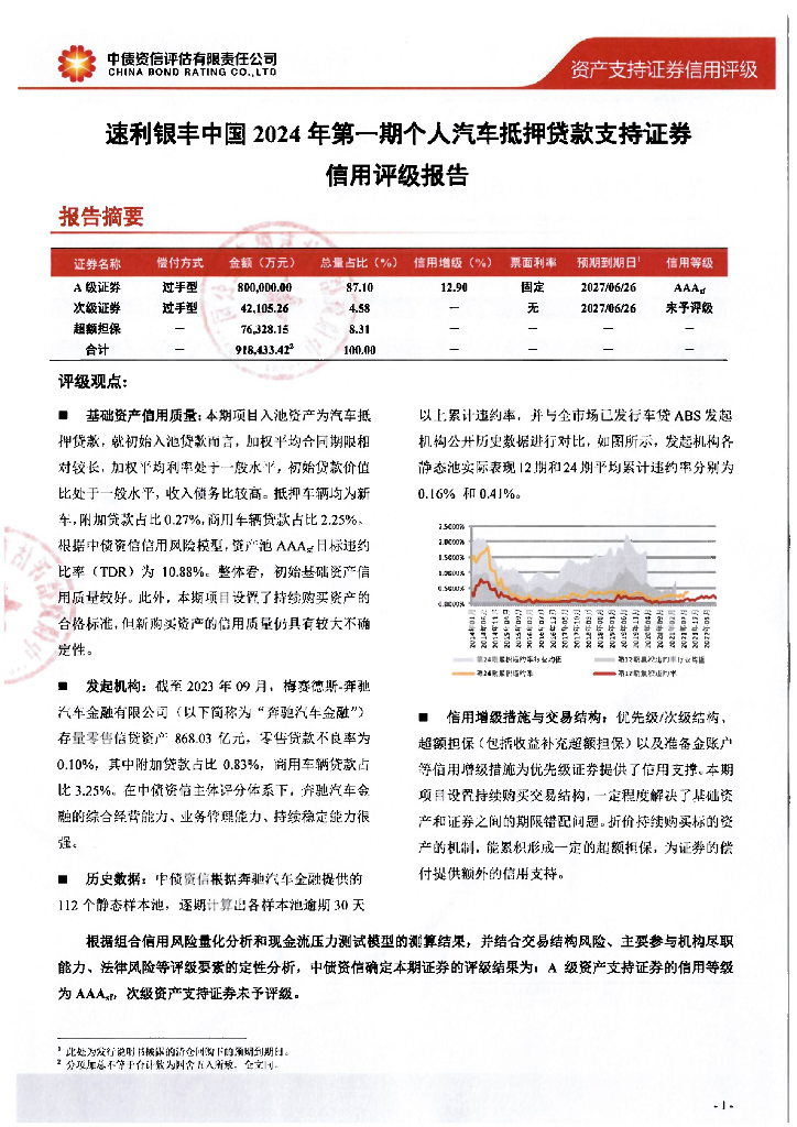 中债资信:速利银丰中国2024年第一期个人汽车抵押贷款支持证券售前评级报告及跟踪评级安排-中债资信.pdf