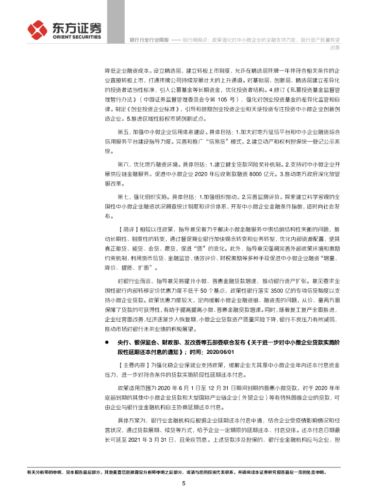 东方证券:银行周观点:政策强化对中小微企业的金融支持力度,银行资产质量有望改善.pdf