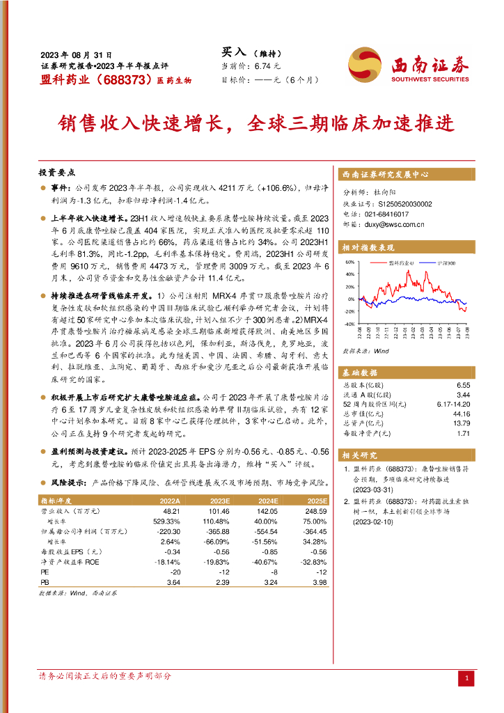 西南证券:盟科药业(688373)-销售收入快速增长,全球三期临床加速推进.pdf
