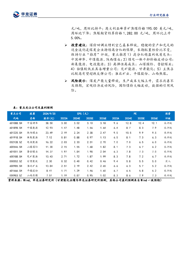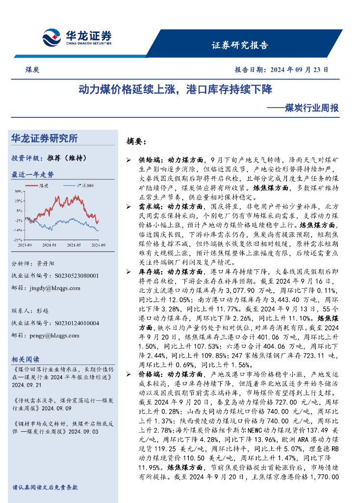 华龙证券:煤炭行业周报:动力煤价格延续上涨,港口库存持续下降.pdf