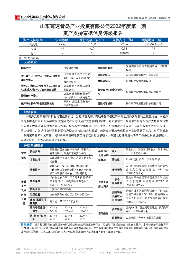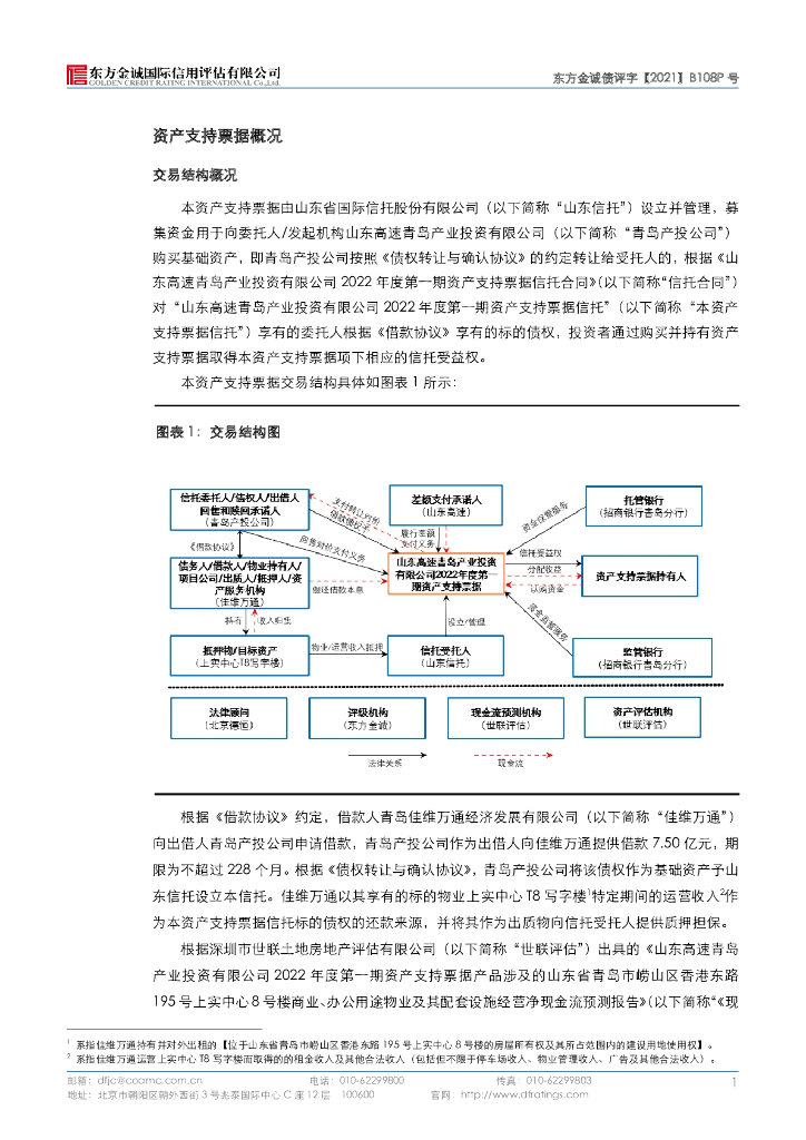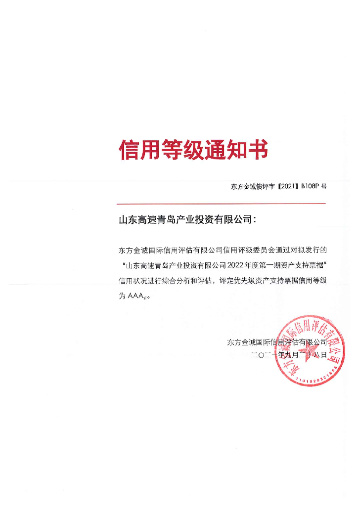 东方金诚:山东高速青岛产业投资有限公司2022年度第一期资产支持票据债项信用评级报告.pdf