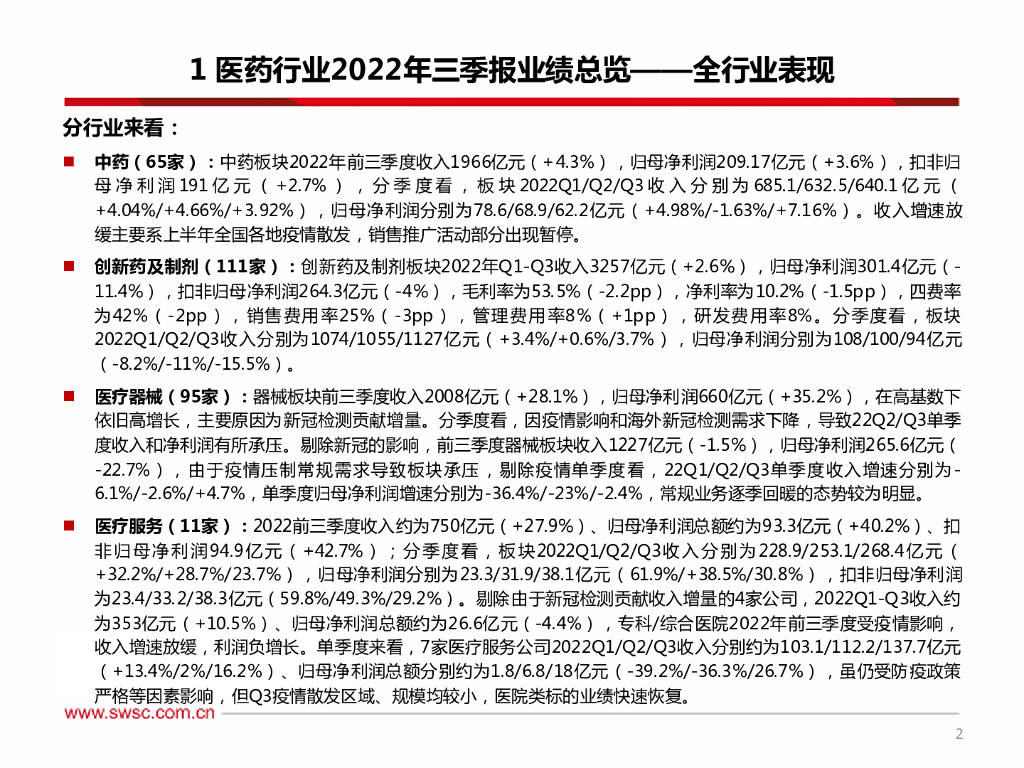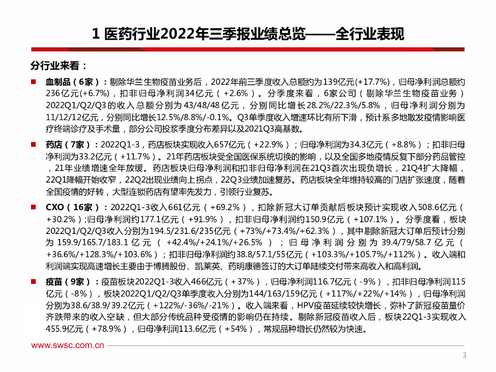 西南证券:医药行业2022年三季报总结:中药消费品、CXO、医疗器械等业绩持续高增,受疫情影响板块Q3逐步恢复.pdf