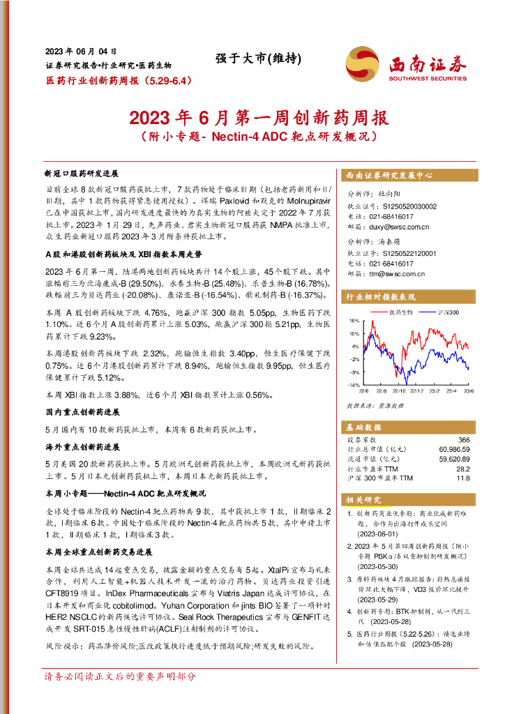 西南证券:2023年6月第一周创新药周报(附小专题-Nectin-4 ADC靶点研发概况).pdf