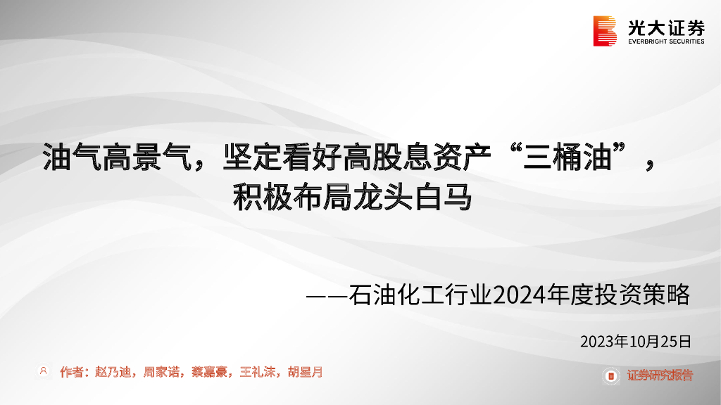 光大证券:油气高景气,坚定看好高股息资产“三桶油”,积极布局龙头白马.pdf