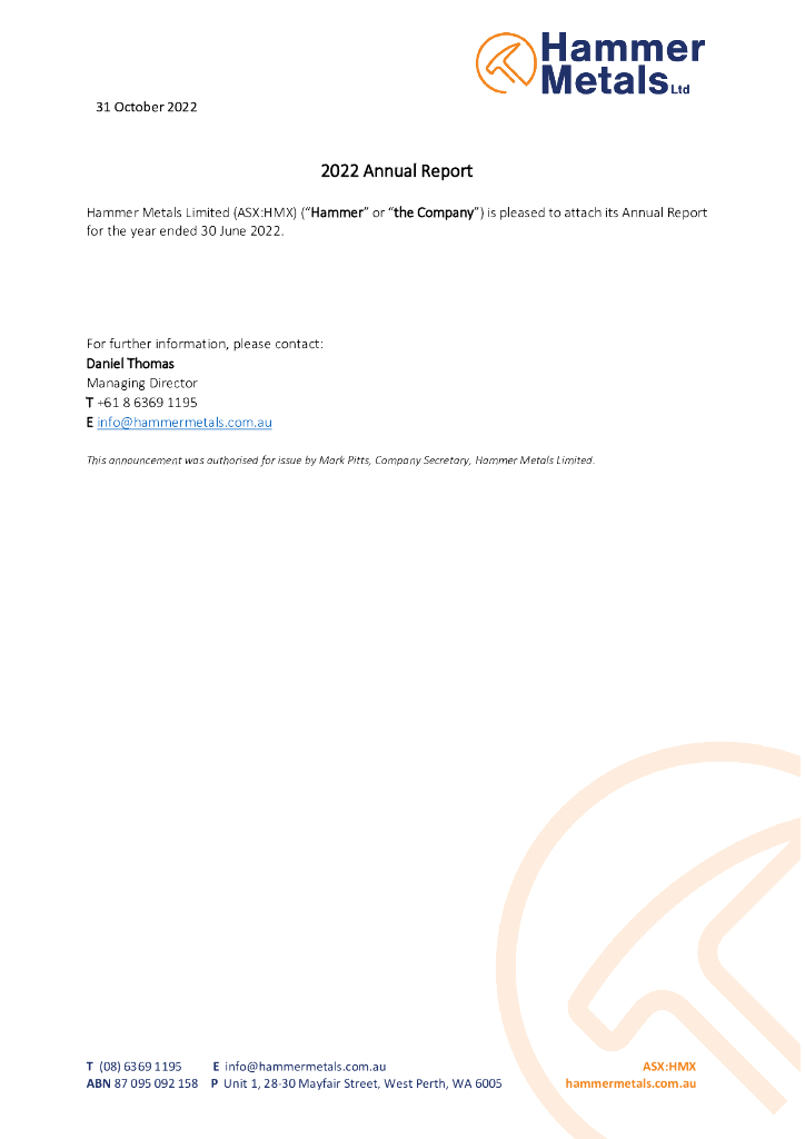 Hammer Metals(HMX)2022财年年度报告(英文版).pdf