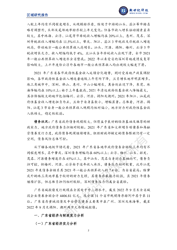 新世纪评级:广东省及下辖各市经济财政实力与债务研究(2022).pdf