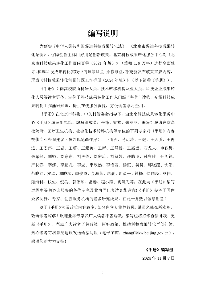北京市科技成果转化服务中心:科技成果转化常见问题工作手册(2024年版).pdf