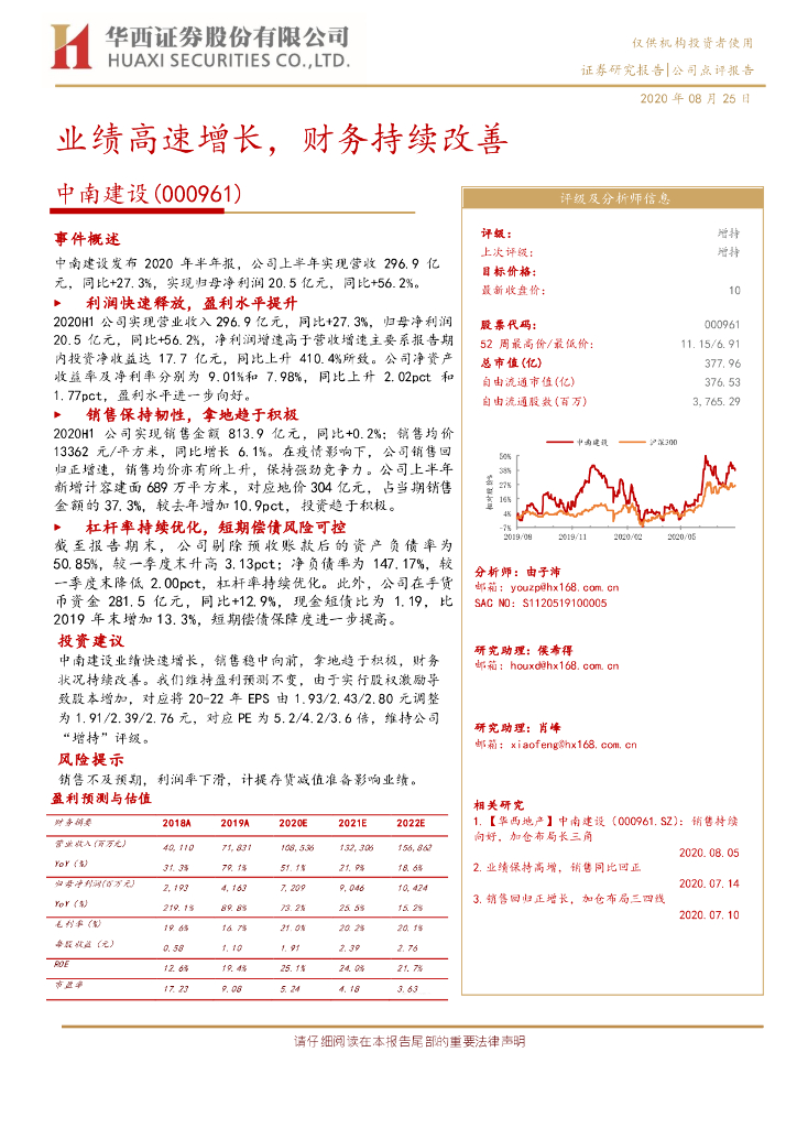 华西证券:中南建设(000961)-业绩高速增长,财务持续改善.pdf