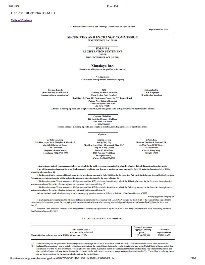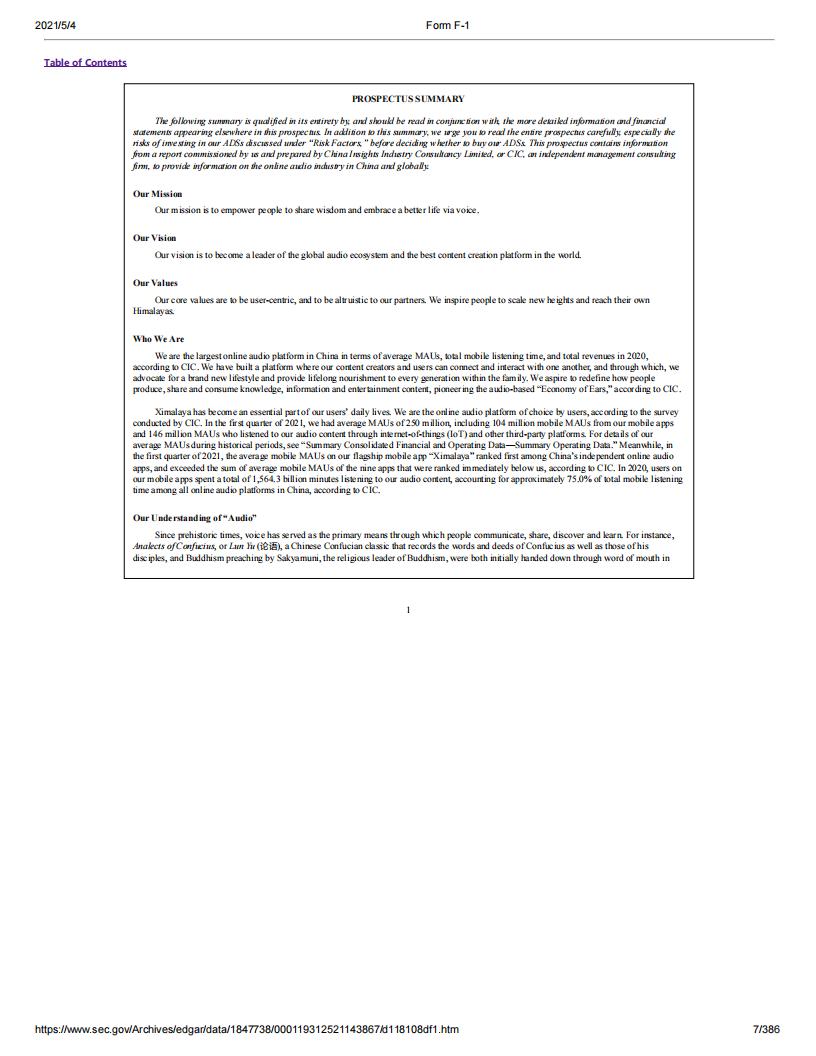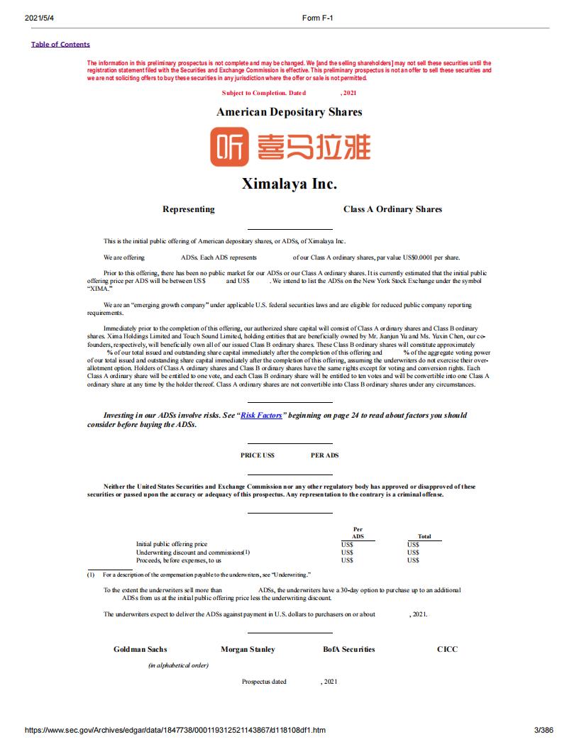 喜马拉雅美股IPO上市申请招股书(英文版).pdf