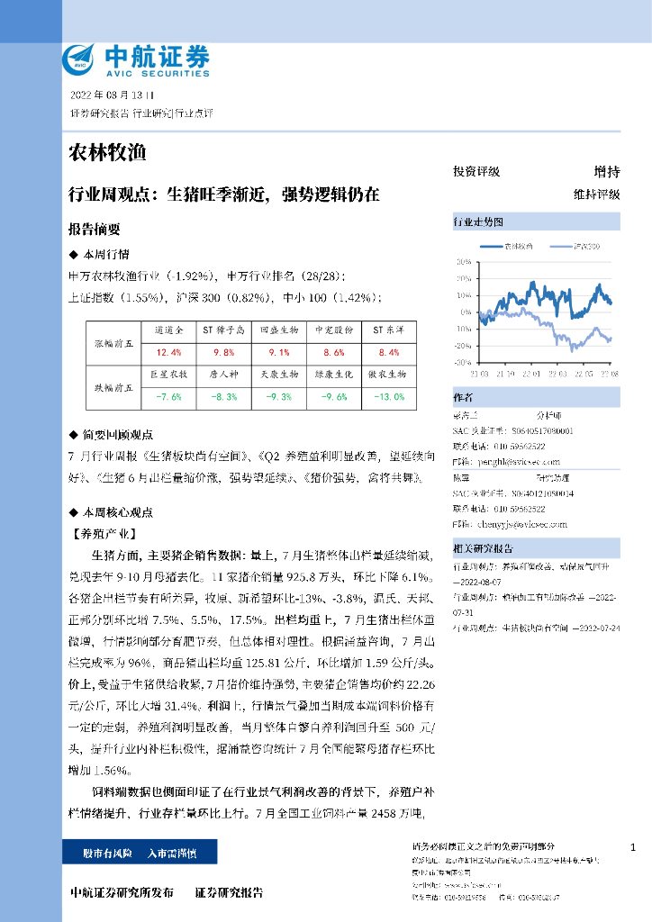 中航证券:农林牧渔行业周观点:生猪旺季渐近,强势逻辑仍在.pdf