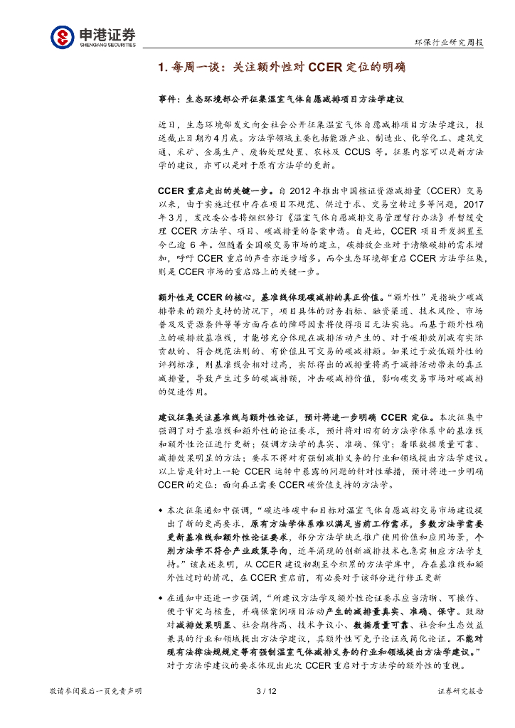 申港证券:环保行业研究周报:关注额外性对CCER定位的明确.pdf